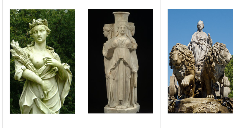 b.- ¿A qué tres diosas de origen extranjero venera? Anota sus nombres al pie de cada imagen, ten en cuenta que una de ellas se identifica con la diosa Cibeles