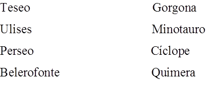 8.- Relaciona estos héroes con los seres monstruosos a los que han vencido.