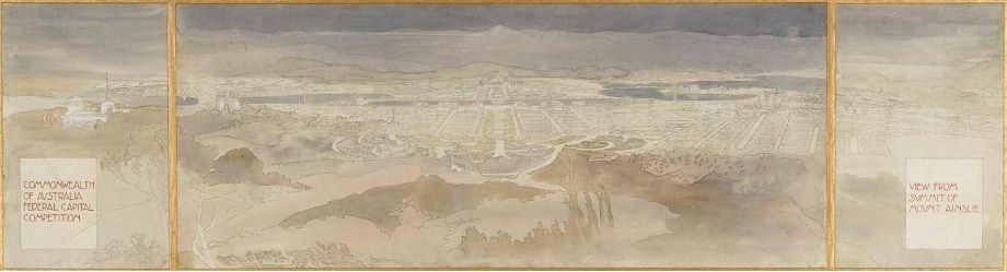 Perspectiva de la ciudad de Canberra realizado por la arquitecta . Extraído de:
