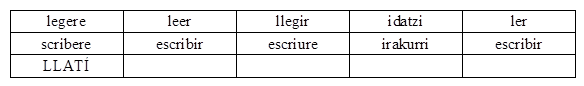 a. Completa la taula posant el nom de les llengües d’Espanya davall dels seus corresponents vocables.