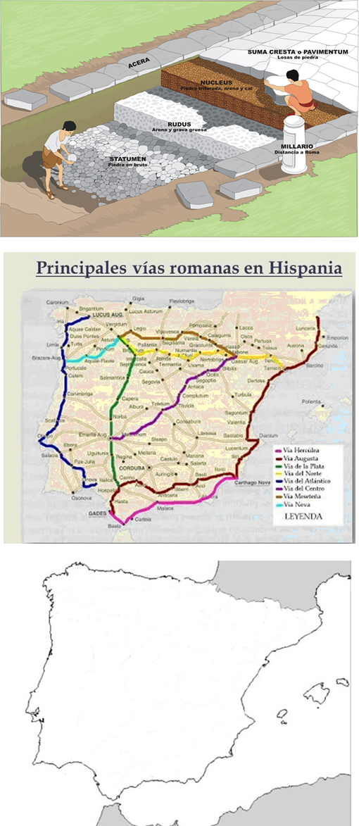 2. Traça algunes de les vies més importants d'Hispània en el mapa mut (tens un mapa d'exemple).