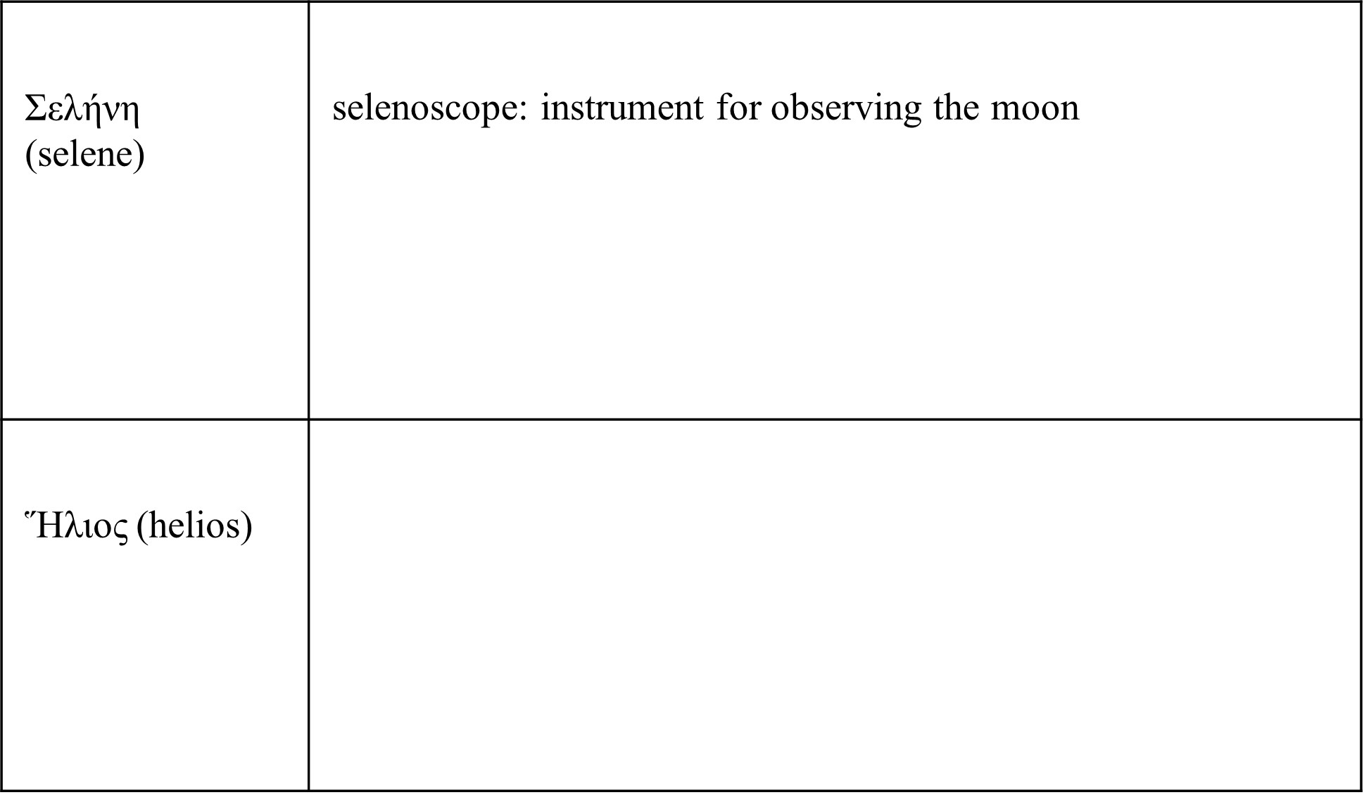 After reading a text about Aglaonice, students are encouraged to reflect on some words of Greek origin which are related to astronomy.