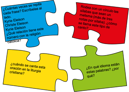 1. A continuación, observa la partitura y vuelve a escuchar la pieza. Cada miembro de vuestro equipo debe intentar resolver una pregunta. Pasado un tiempo se reunirá con el alumnado de los otros equipos que tenga la misma pregunta. Una vez lleguen a un acuerdo sobre la respuesta correcta, volveréis a vuestro equipo base para explicar las conclusiones y respuestas a cada pregunta que copiaréis en vuestro cuaderno o portafolio.