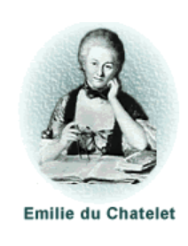 Emilie du Chatelet: dedicó su vida al estudio y fomento de las actividades científicas. Fue una gran estudiosa de Newton y Leibniz. Su contribución científica más importante fue la traducción de los Principia Mathematica de Newton del latín al francés, para lo que tuvo que aprender geometría y astronomía. |