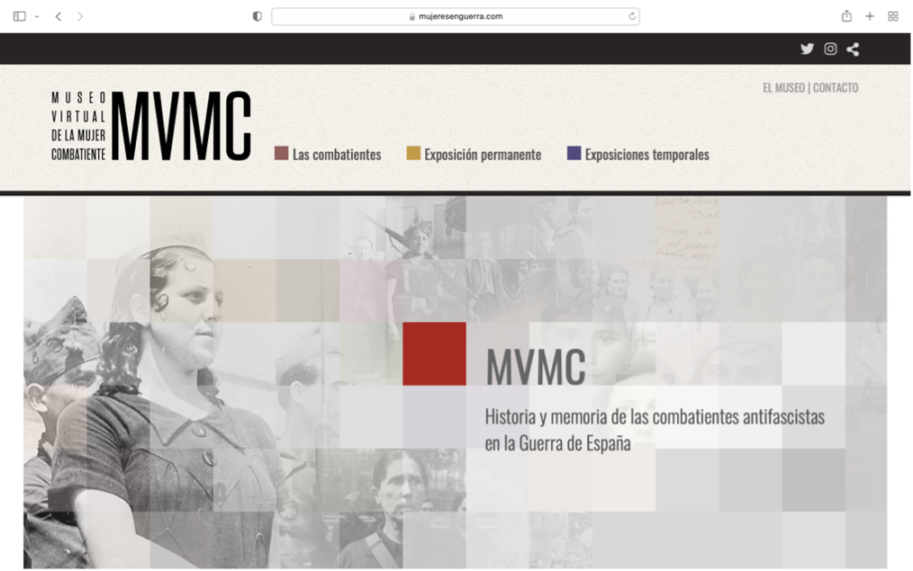 Vamos a visitar el Museo Virtual de la Mujer Combatiente (MVMC) https://www.mujeresenguerra.com y, a través de sus salas vamos a conocer a las mujeres que lucharon en los frentes de la guerra civil española como cualquier otro soldado, no solo como enfermeras, asistentes o colaboradoras en la retaguardia.