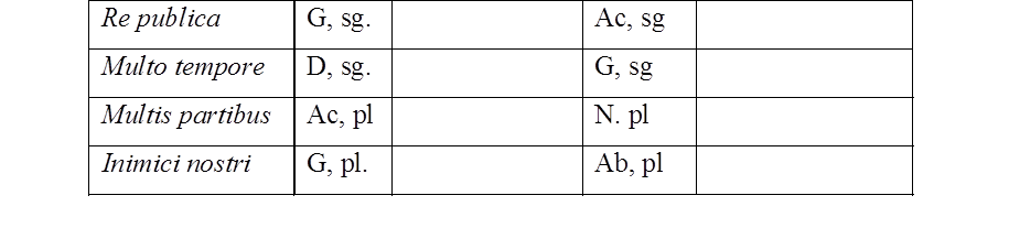 3.- Declina los dos primeros sintagmas del ejercicio anterior.