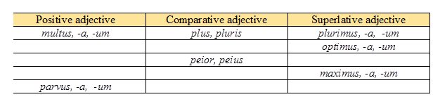 3.- Keep in mind that there are irregular adjectives (many, good, bad, big, small) that use a different stem from the positive degree. Complete the following table: