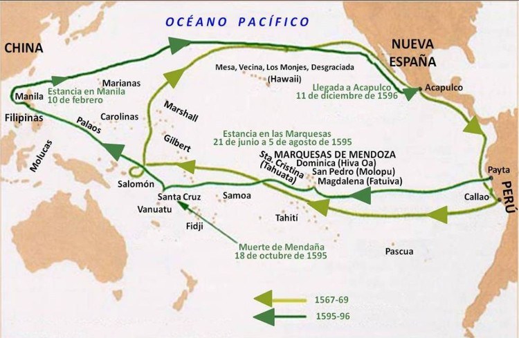 Estudiamos, a través del mapa de las expediciones realizadas por Álvaro de Mendaña, con especial atención al segundo viaje, la importancia de la época de los descubrimientos y el papel que tuvo en ellas Isabel Barreto.