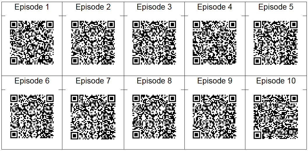 - Los enlaces de los distintos episodios de la serie auditiva de la BBC Frankenstein contienen el audio de cada episodio y la transcripción, junto con un glosario de vocabulario. Tanto el audio como la transcripción se pueden descargar por separado. Si estamos trabajando la comprensión oral, lo ideal es darles acceso solamente al audio. Para ello, se han añadido los códigos QR, que dan acceso al audio solamente.
