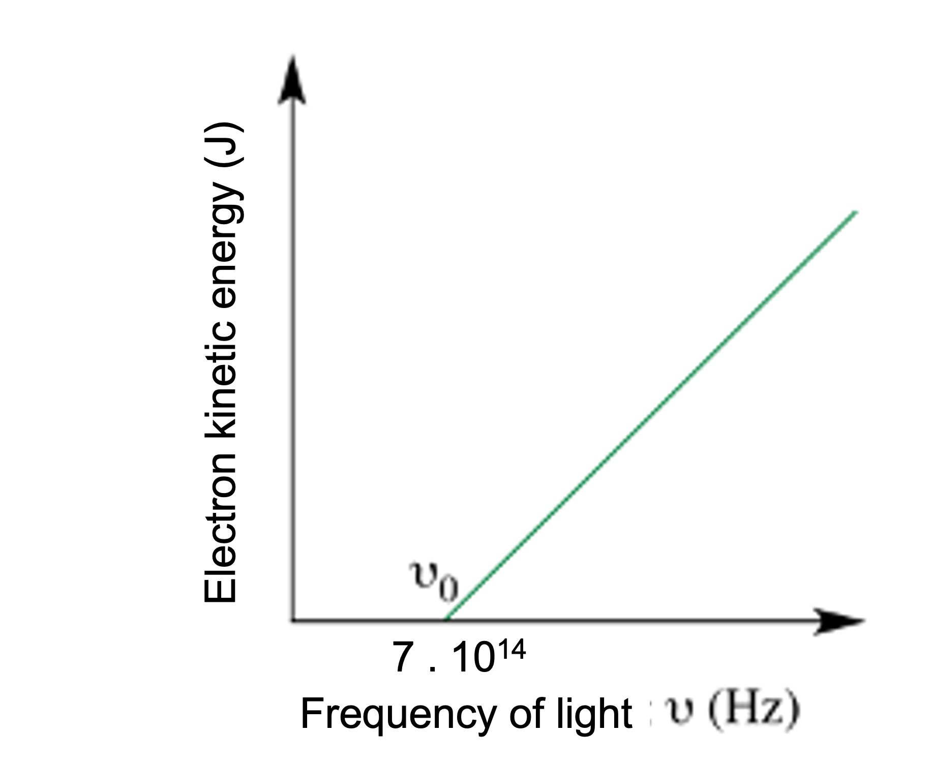 The following graph represents the energy (OY axis) of the removed electrons, as a function of the frequency (OX axis) of the light that reaches the metal.