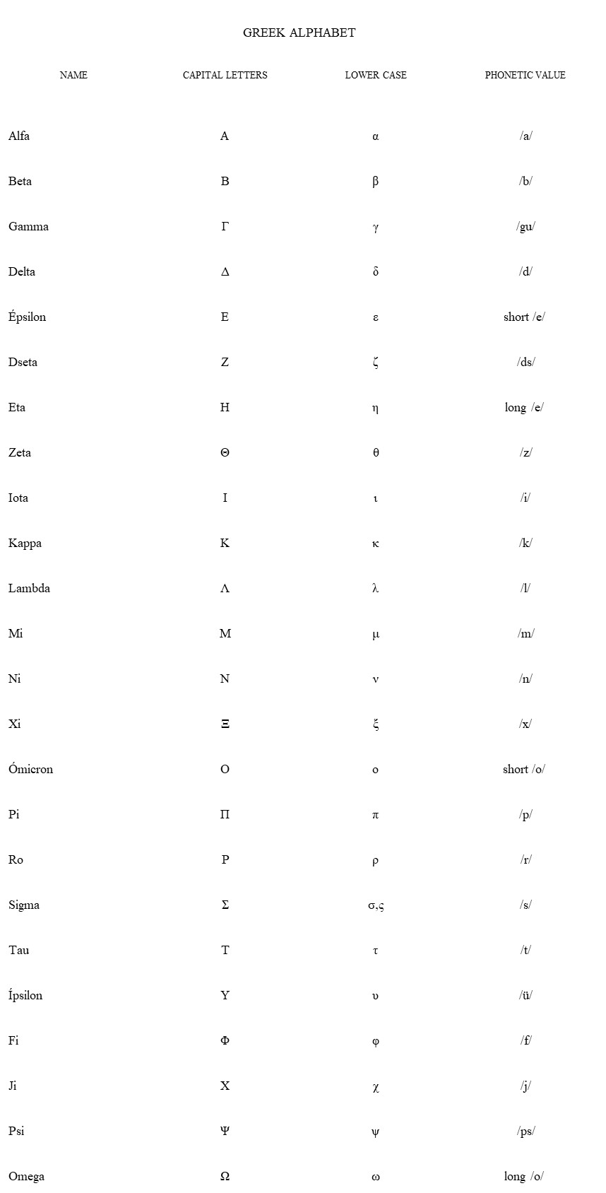 -Each member of each group will have a table with the Greek alphabet and its pronunciation.