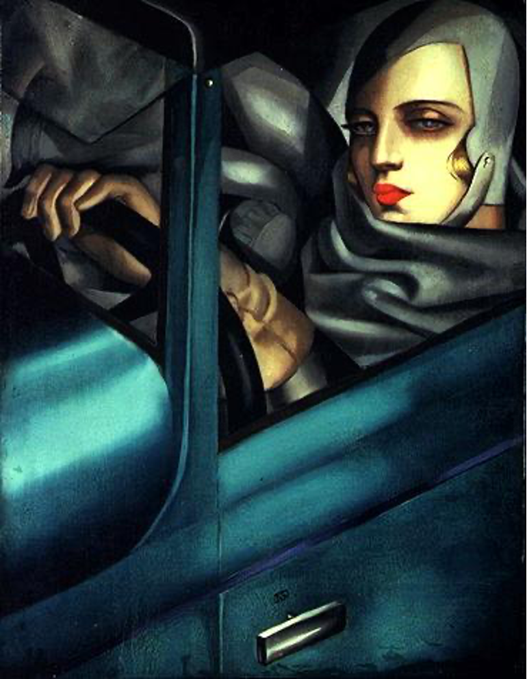 El Bugatti verde del famoso "Autorretrato" era, de hecho, un Renault. Además, era amarillo, si hemos de creer los recuerdos de su hija. Sea como fuere, Lempicka era irresistiblemente seductora al volante, tanto que llamó la atención de la editora de una importante revista de moda alemana, Die Dame. Este fructífero encuentro le brindó a Lempicka la oportunidad de aparecer en muchas crónicas de la revista, lo que contribuyó en gran medida a la difusión de su reputación (según Passion by Design, The Art and Times of Tamara de Lempicka, op.cit.).