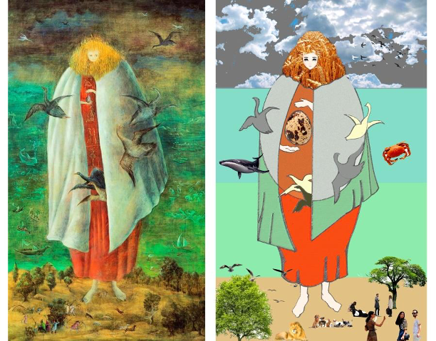 Los elementos que rodean a la figura principal, que en la obra original son personas, animales y naturaleza, serán reinterpretados y la técnica a utilizar será el fotomontaje.