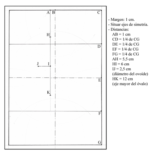 El alumnado, tendrá que realizar una interpretación, construyendo geométricamente el óvalo a partir de su eje mayor y el ovoide conociendo su diámetro.