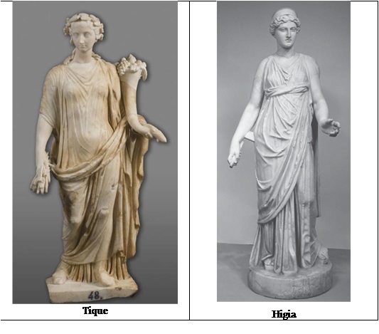 Fíjate ahora en estas otras imágenes que representan a Tique y a la diosa Higia (copia romana que se encuentra en el Louvre)