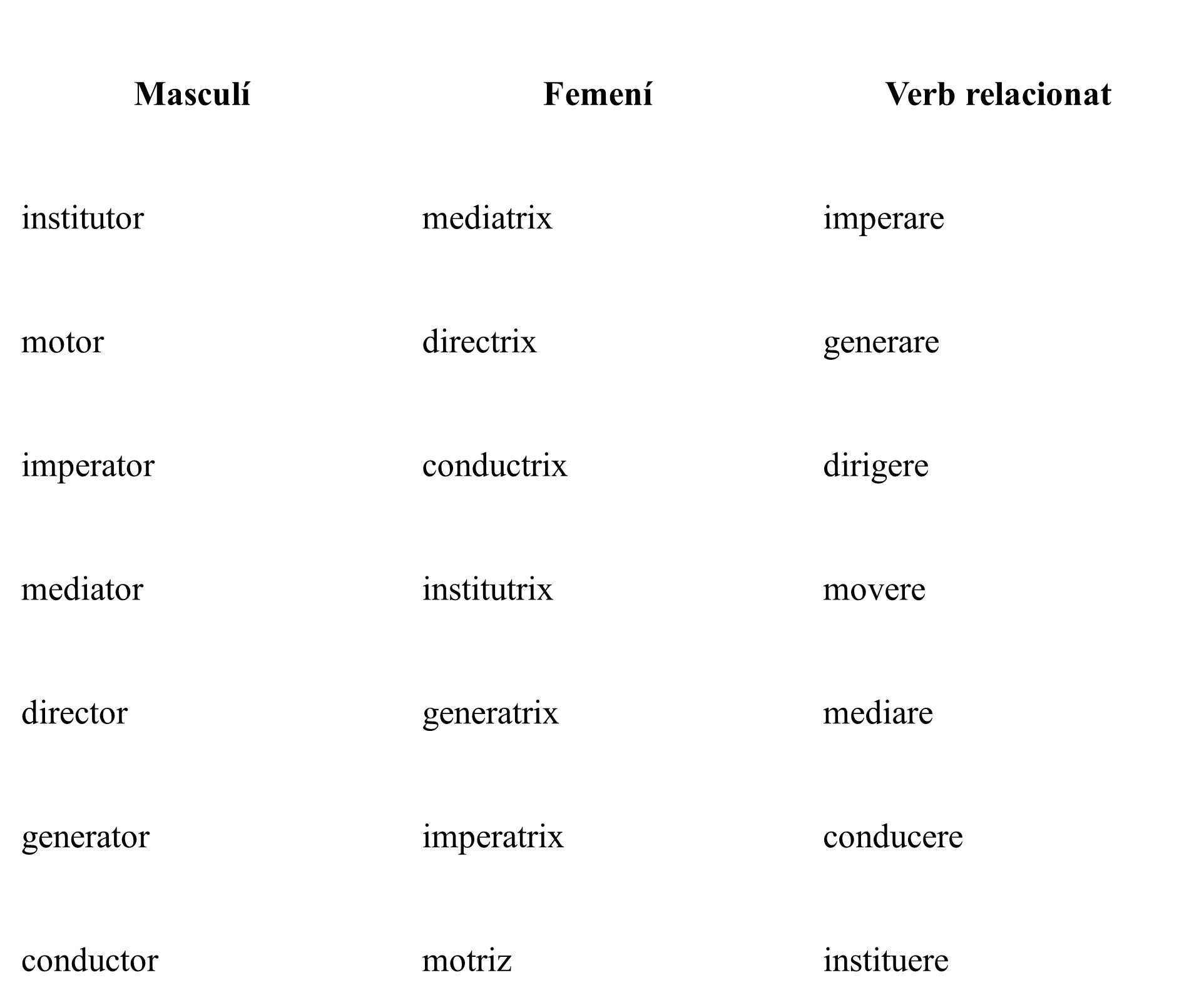 3- Tenint en compte que el sufix -trix és el corresponent femení de -tor, respon: