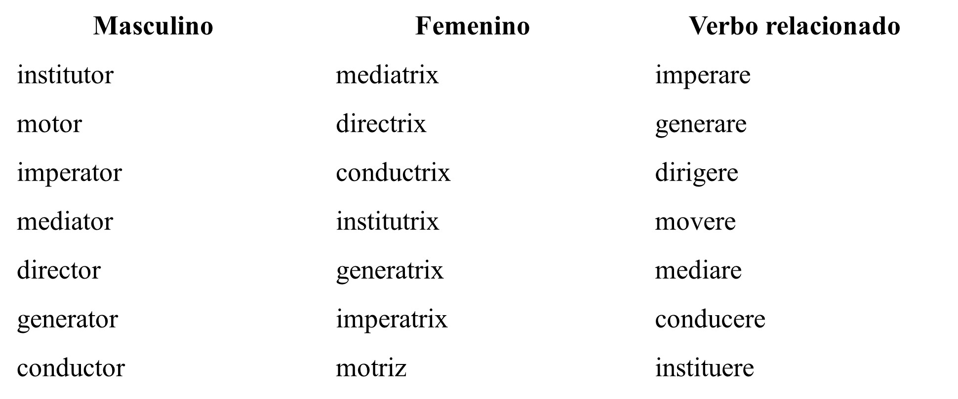 Estudiar el sufijo de agente femenino –trix e identificarlo en español. Formación de palabras a partir de étimos latinos y el sufijo -trix.